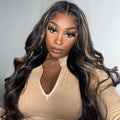 Megalook Bogo Free Honey Blonde Highlights On Black 5x5 Closure Wig 100% Human Hair Wig