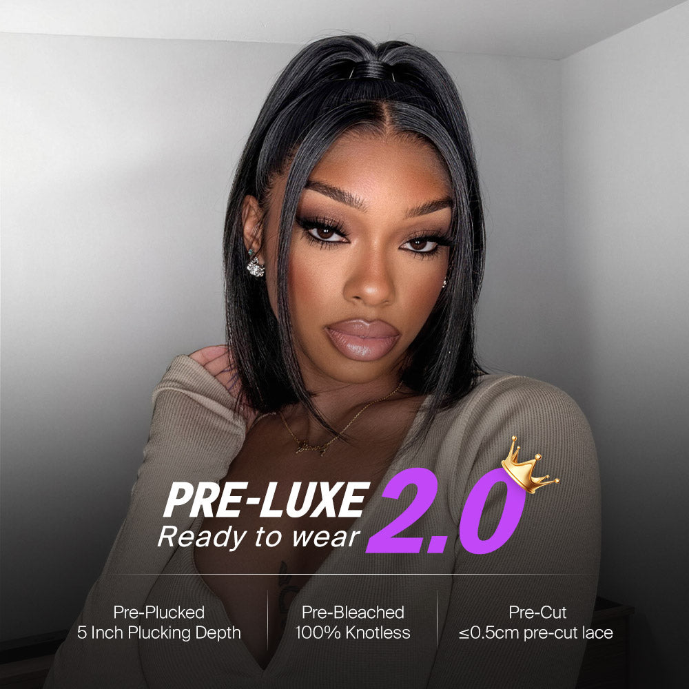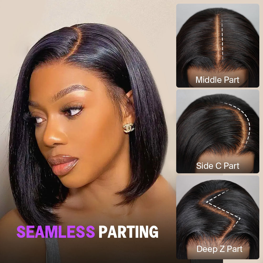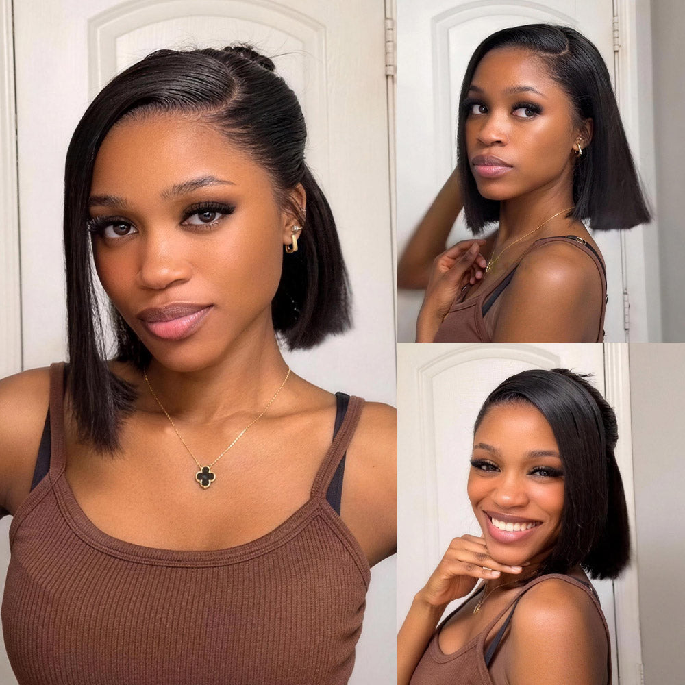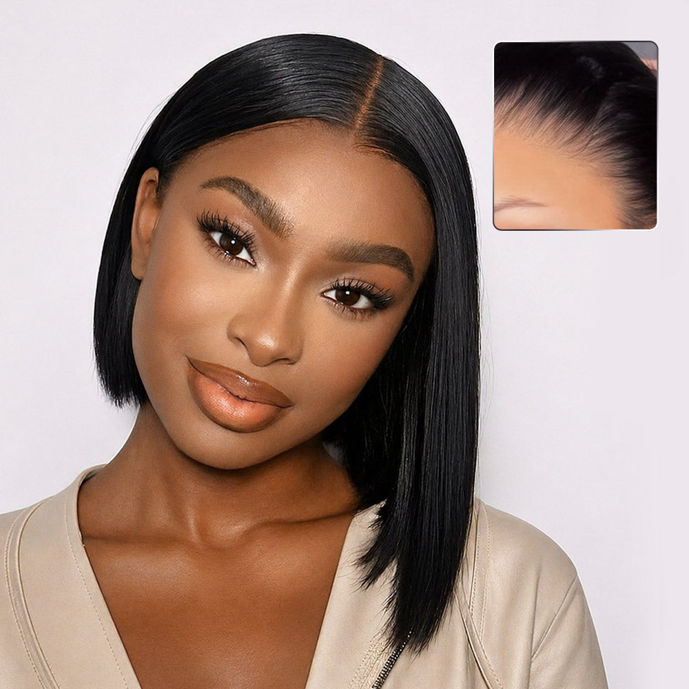 Megalook 13x5 Glueless Straight Bob Wig With Pre-Cut Lace Natural Black Virgin Hair Wig