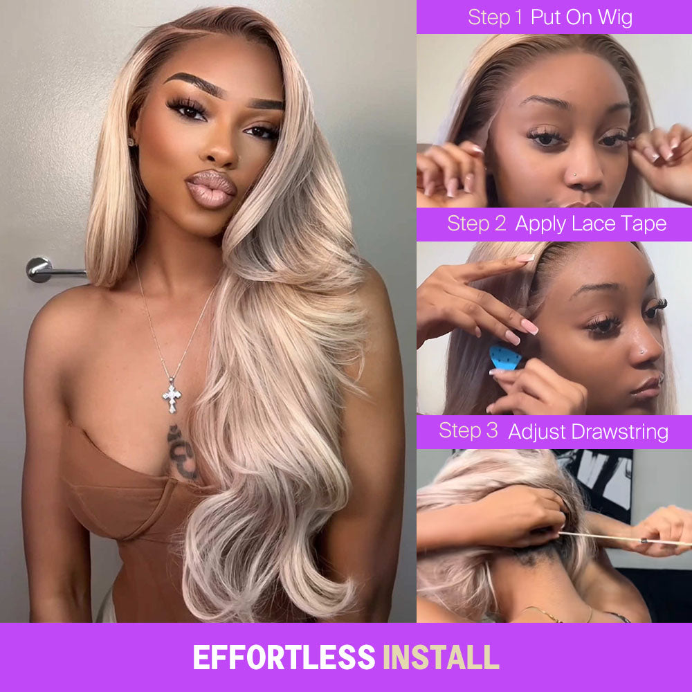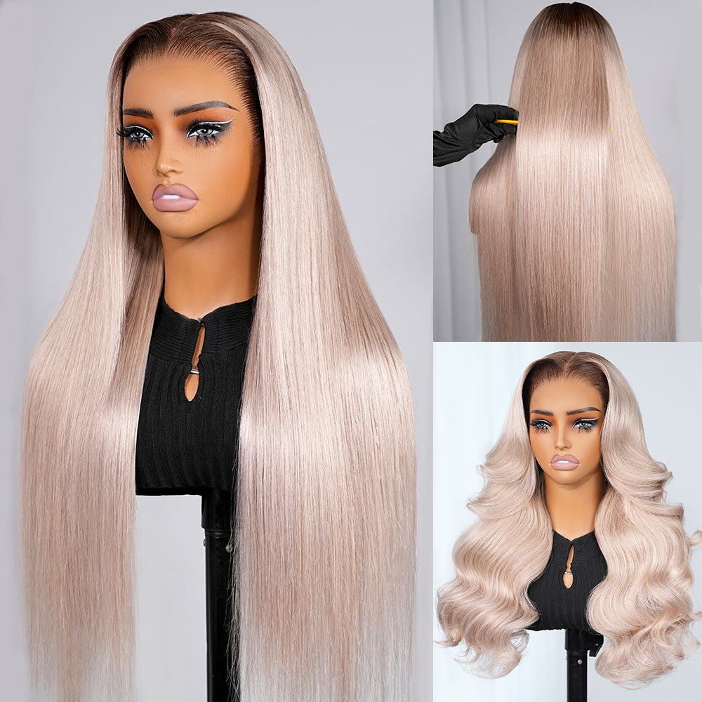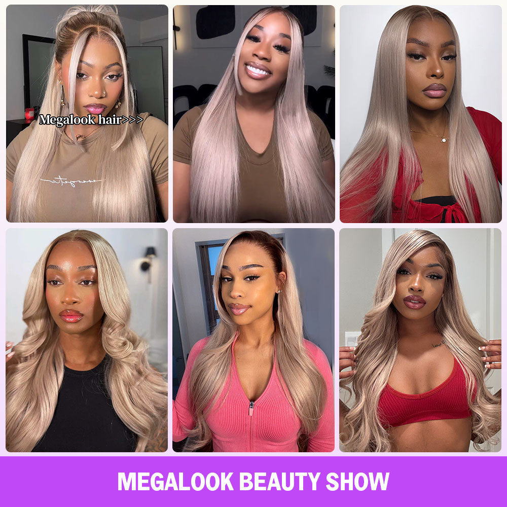 Megalook 13x6 Three-Go™ Ash Blonde Ombre Glueless Wigs Silky Straight With Drawstring 100% Human Hair Wig