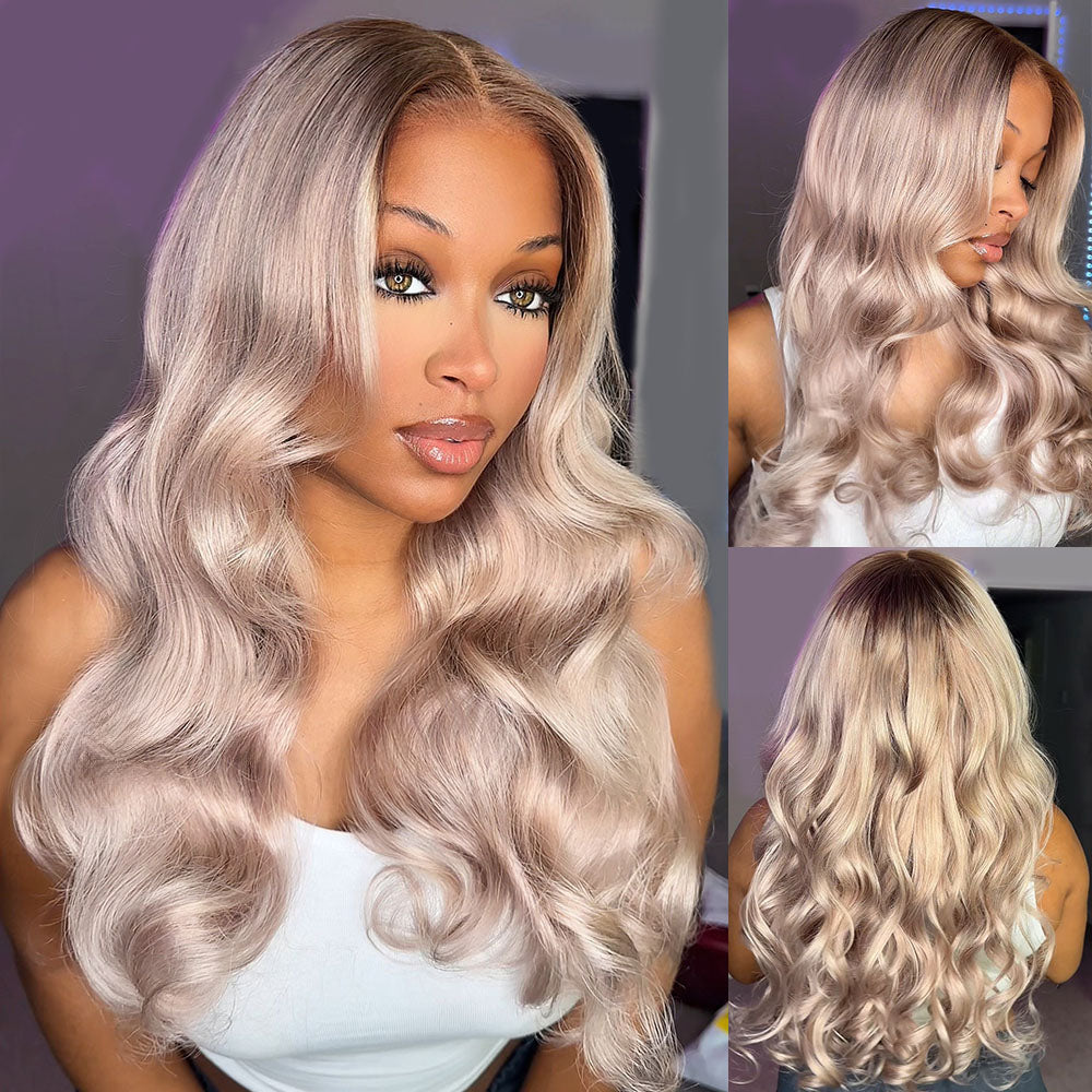 | Color | Ombre Ash Blonde Wigs With Brown Roots |