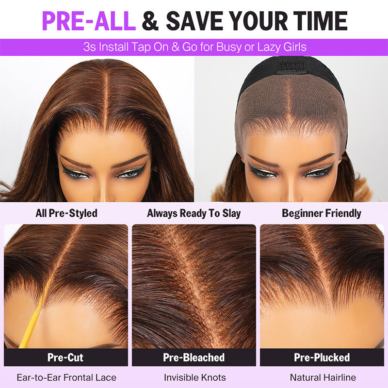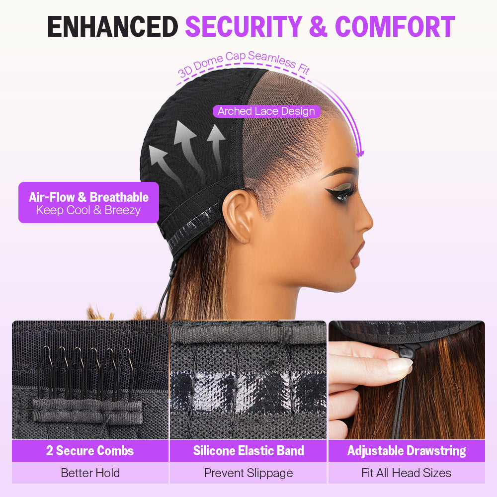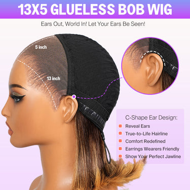 Megalook 13x5 Pre-All Glueless Brown Ombre Straight Bob invisible knots Breathable Cap Beginner Friendly