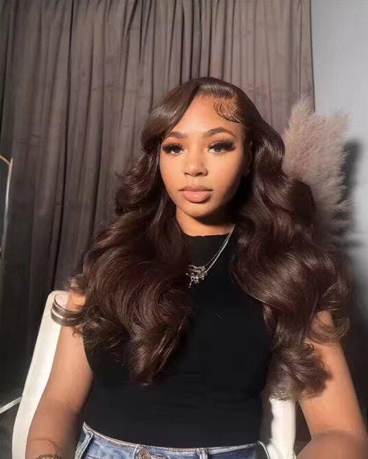Megalook 13x4 Lace Frontal Chocolate Brown Body Wave Wigs Invisible Knots Natural Hairline