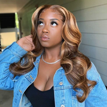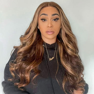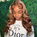 Megalook 13x4 Lace Frontal Honey Blonde Highlights On Brown Body Wave Invisible Knots Natural Edges