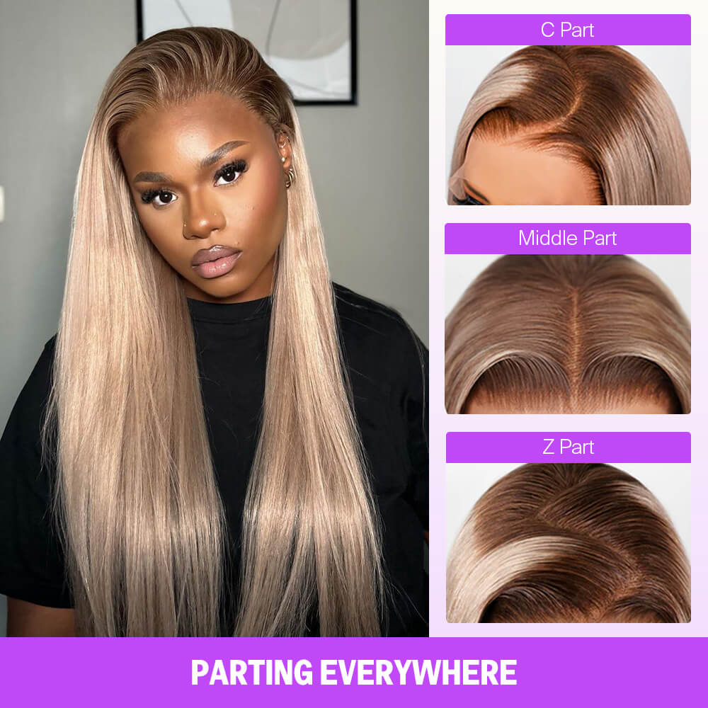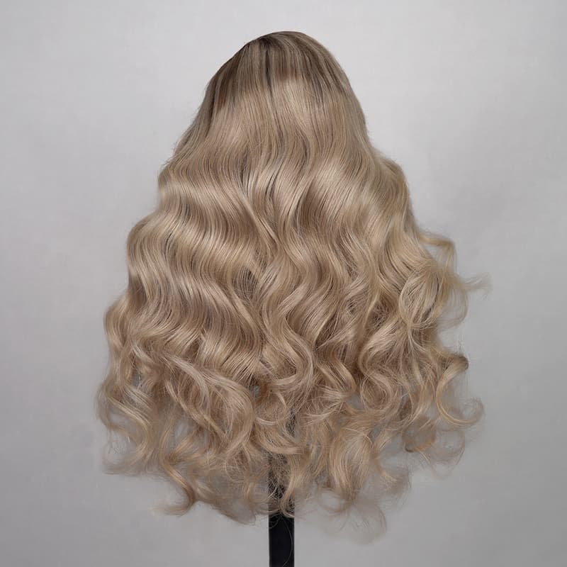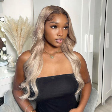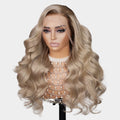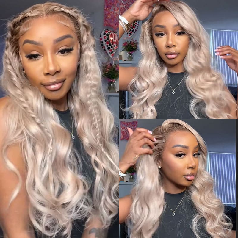 Megalook 6x5 Invisible Knots & 13x4 Lace Frontal Ash Blonde Ombre Loose Body Wave Wigs Natural Hairline