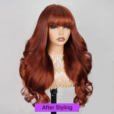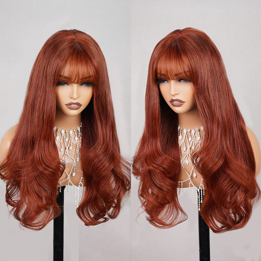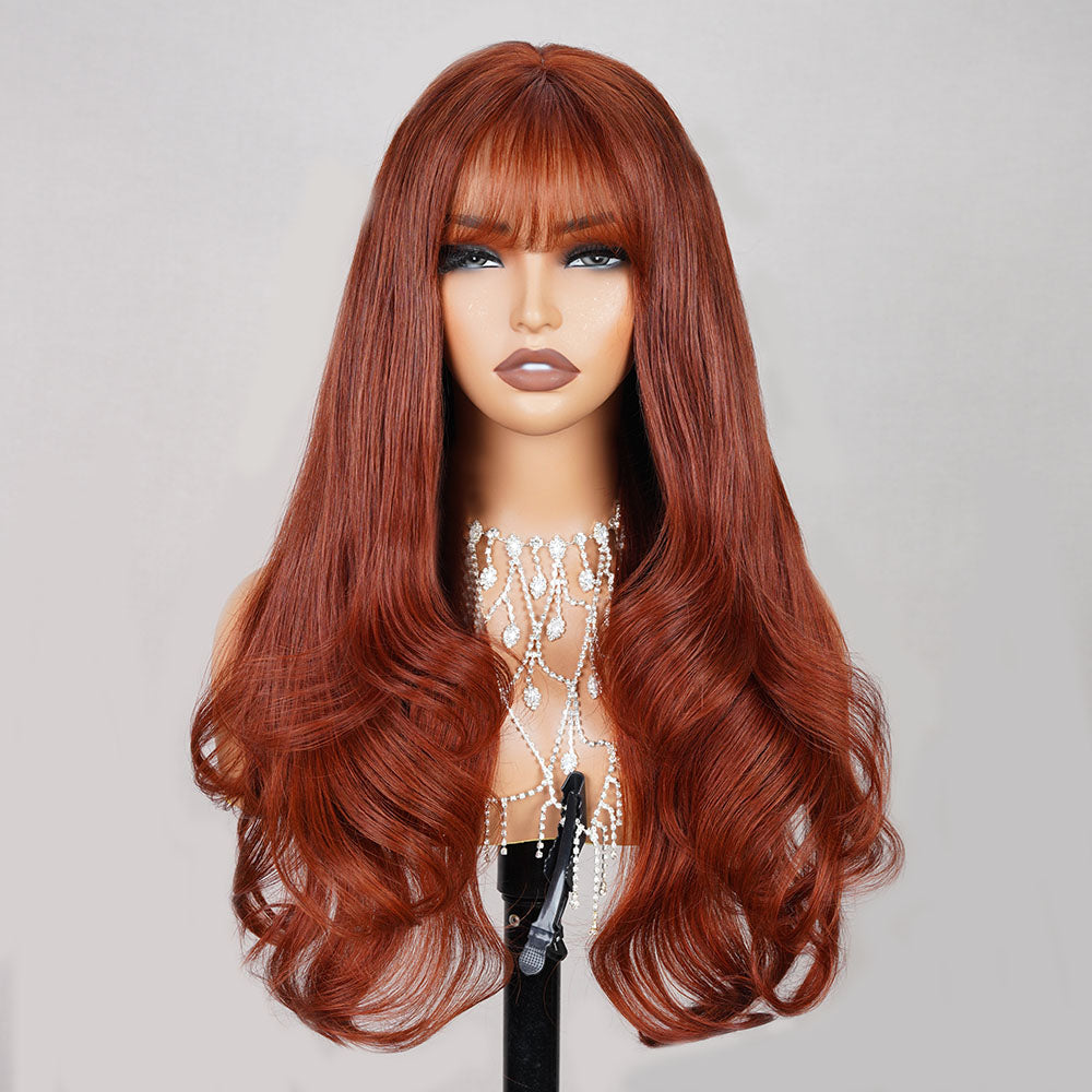 Megalook 5x5 Lace Closure Reddish Brown With Bang Loose Wave Wigs Realistic Hairline