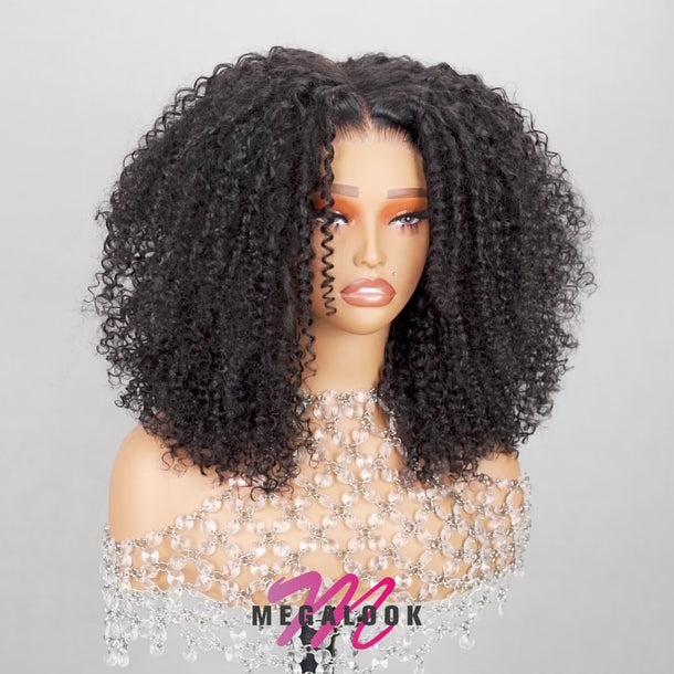 Megalook Bogo Free 250% Density 20Inch 6 Inches Deep Part Wigs Jerry Curly Natural Black 100% Human Hair Wig