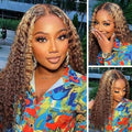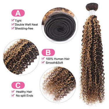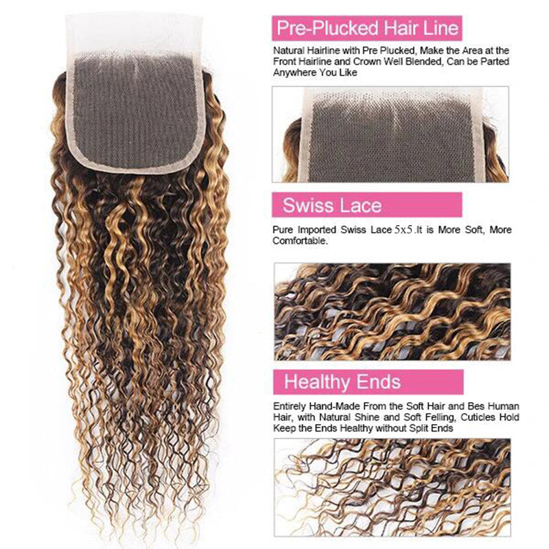 Honey Blonde Highlight Bundles With 5x5 Lace Closure Virgin Human Hair Highlight Curly Hair