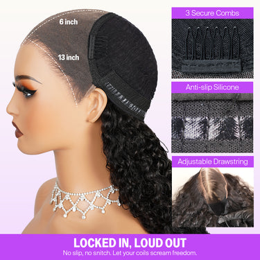 Megalook 13x6 Three-Go™ Glueless Wig Burmese Curly With Drawstring With Finger Coil Ends Hold Curls Well