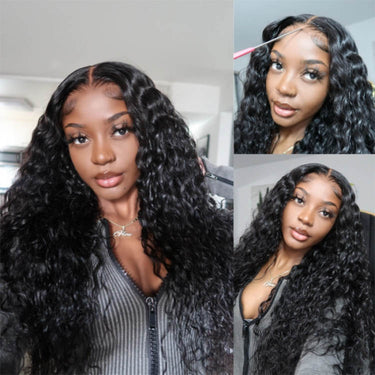 Megalook 4x4 Lace Closure Water Wave Wigs Natural Black Realistic Hairline