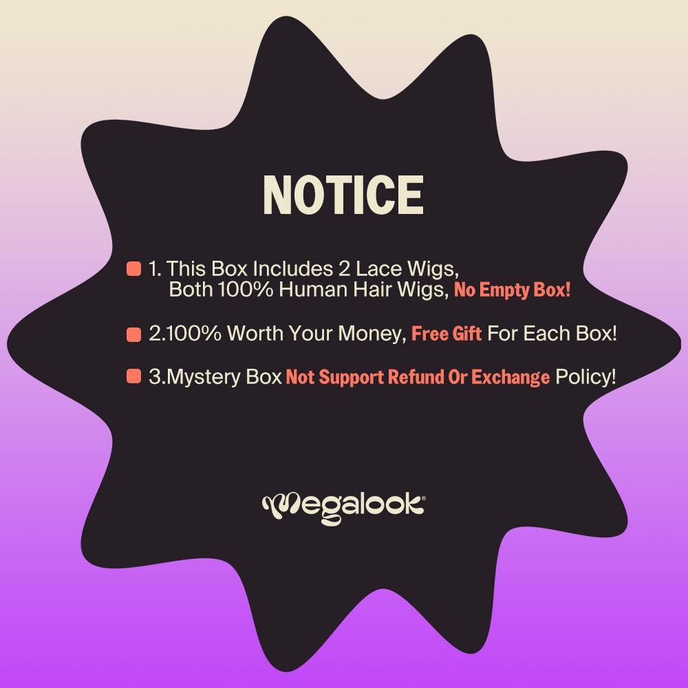 Megalook Mystery Box $169 Get 2 Different Lace Wigs 12-24Inch Human Hair Ship Randomly