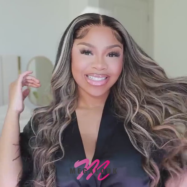 Megalook 13x4 Lace Frontal Balayage Highlight Body Wave Wigs Invisible Knots Natural Hairline