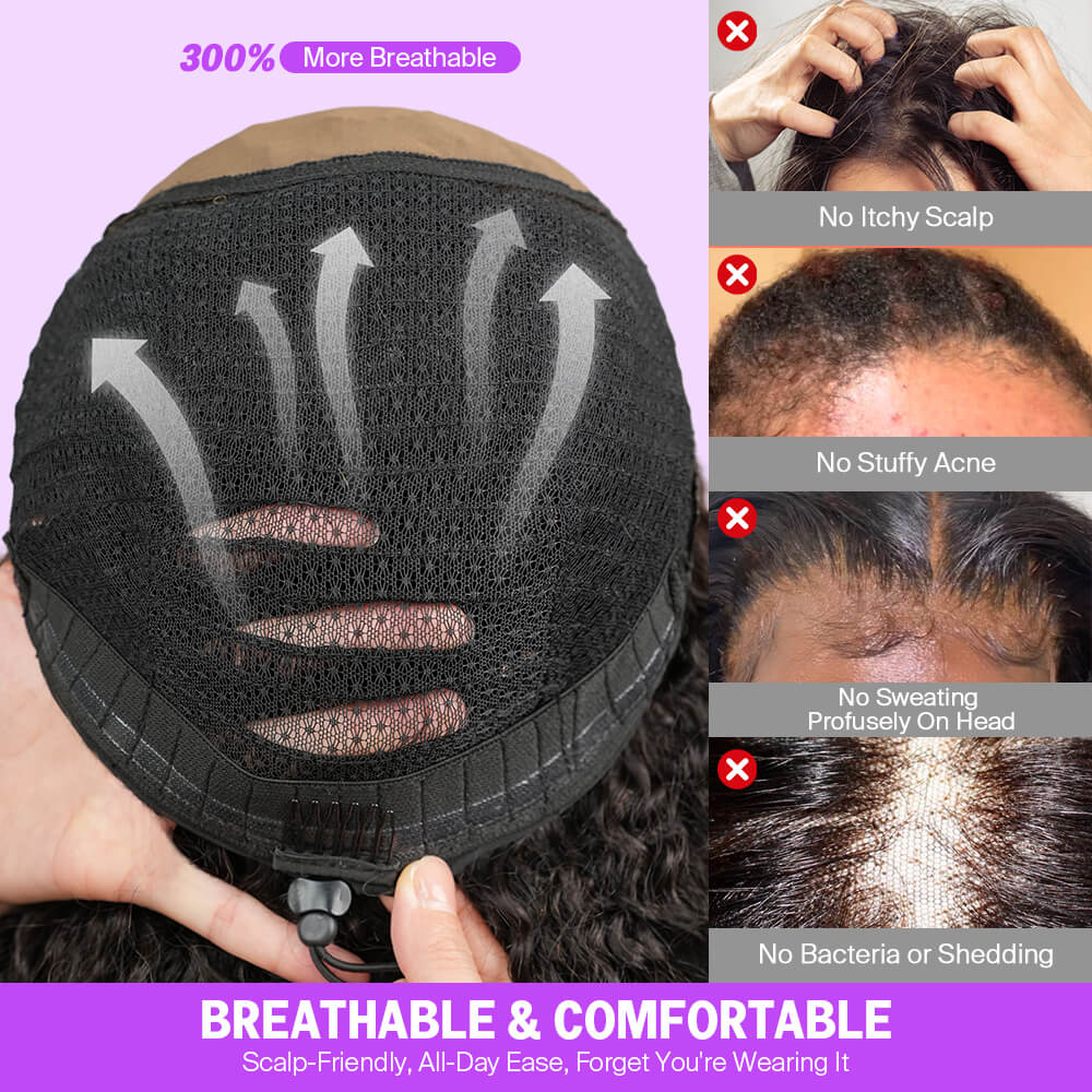 Megalook 3D Lace Half Wig Glueless Water Wave Hair With Breathable Dome Cap 6Inch Deep Parting