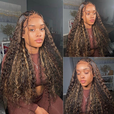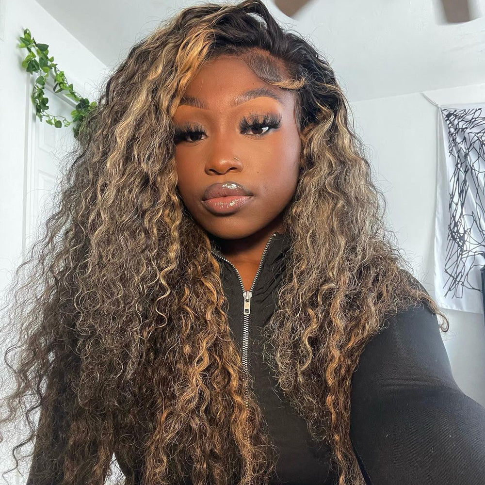 Megalook 13x4 Lace Frontal Balayage Highlight Water Wave Invisible Knots Natural Edges