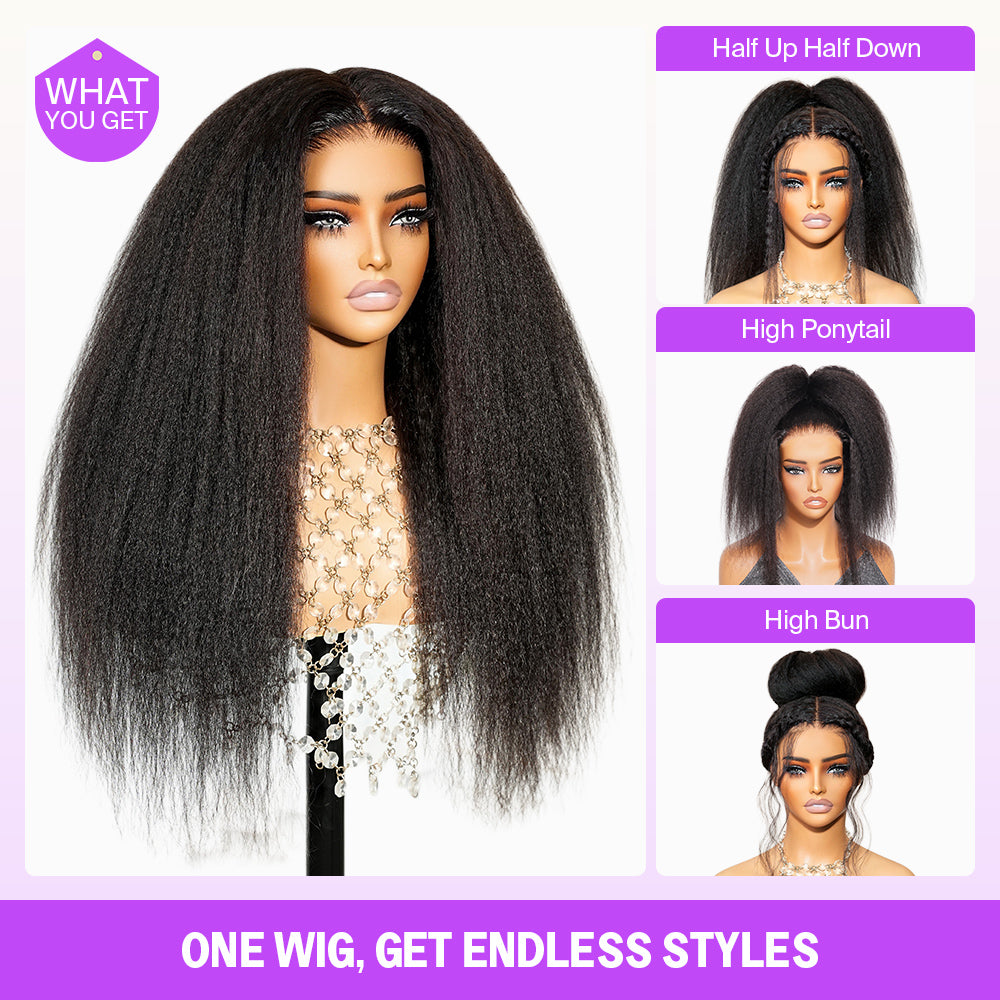 Megalook 3D Lace Half Wig Glueless Yaki Straight Hair With Breathable Dome Cap 6Inch Deep Parting