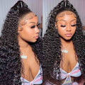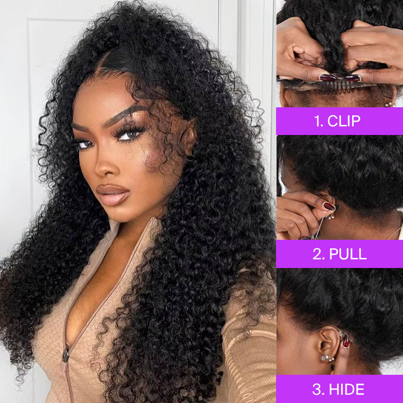 Megalook 360 Full Lace Glueless Jerry Curly Wigs Invisi Drawstring Natural Black Pull & Go