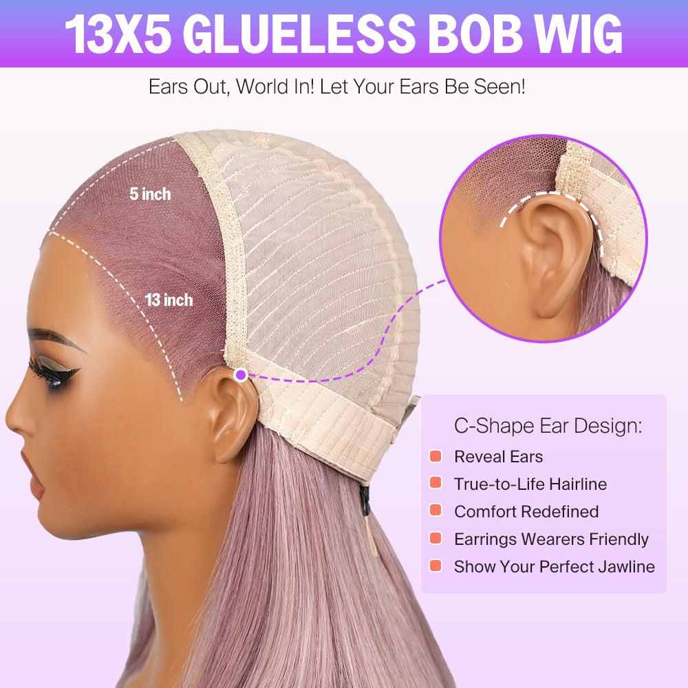 Megalook 13x5 Pre-All Glueless Ash Purple Straight Bob Invisible Knots Beginner Friendly