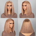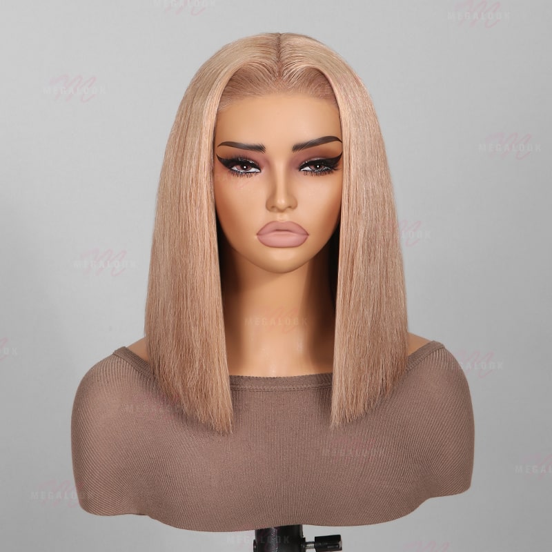 Megalook 6 Inches Deep Part Wigs Blonde Highight Straight Bob Natural Black 100% Human Hair Wig
