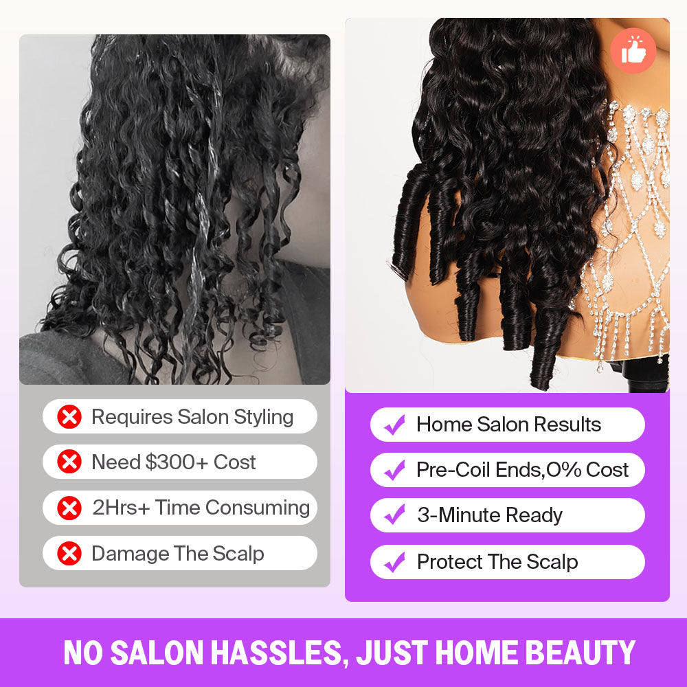 Megalook 13x6 Three-Go™ Glueless Wig Curly Water Wave With Drawstring Natural Black Breathable Cap 100% Human Hair Wig