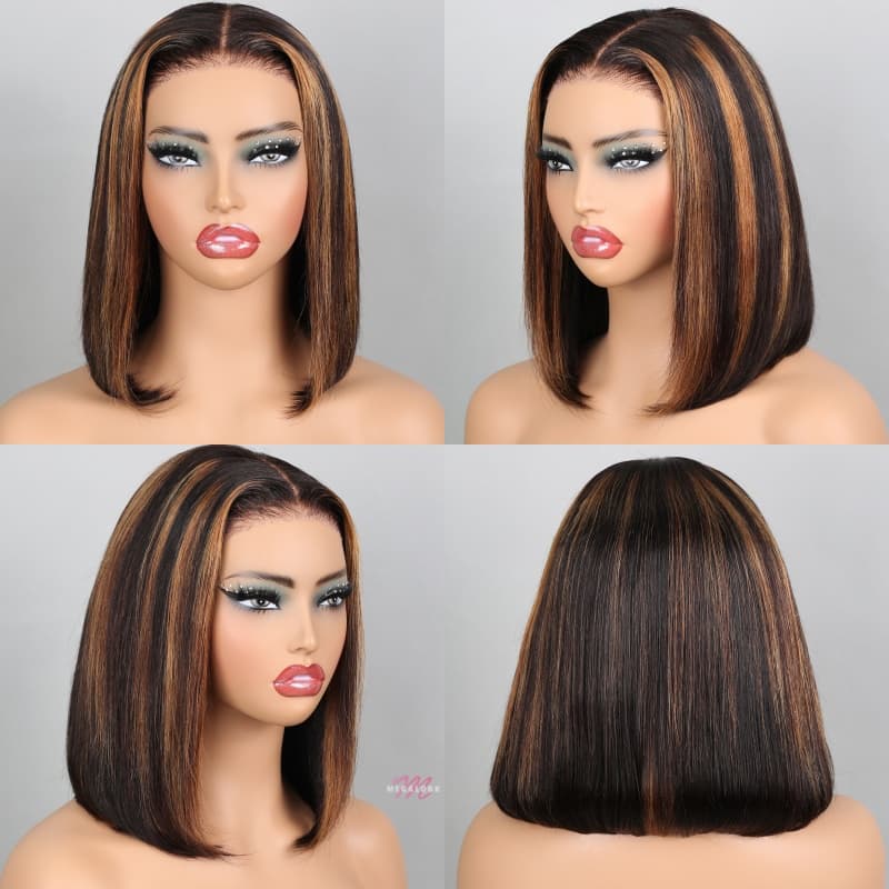 Megalook 6x5 Invisible Knots Glueless Balayage Higlight Straight Bob Realistic Hairline Beginner Friendly