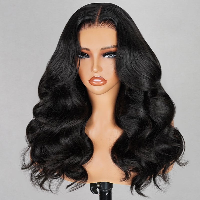 Megalook 6x5 lnvisible Knots Glueless Loose Body Wave Wigs Pre-cut Lace Natural Black Beginner Friendly
