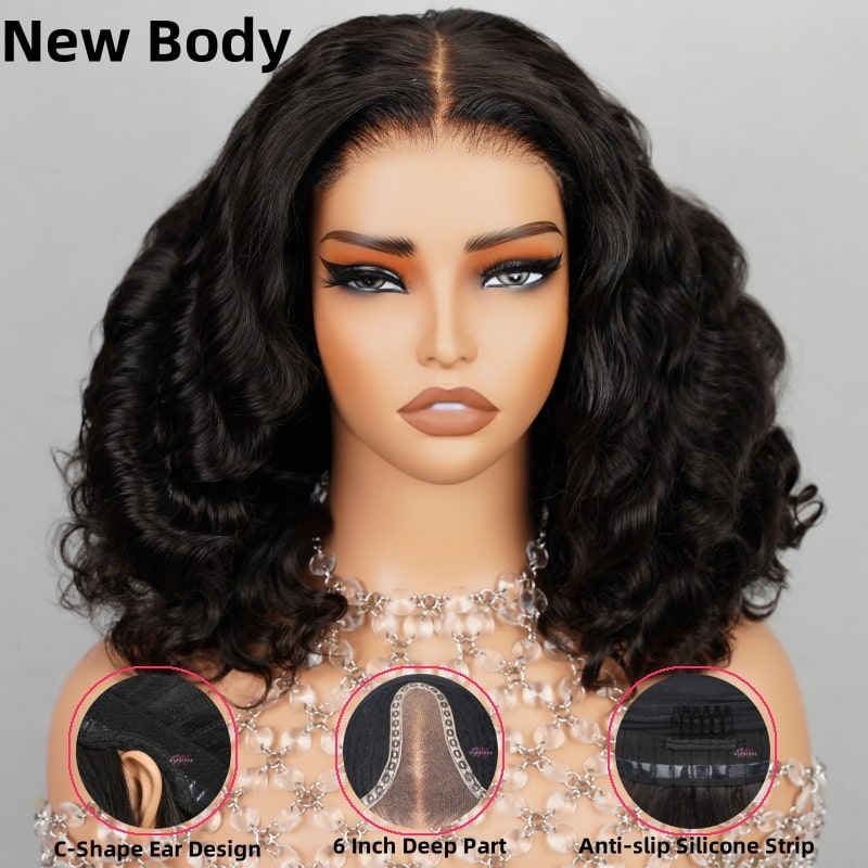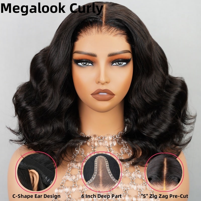 Megalook 6 Inches Deep Part Wigs Megalook Curly Natural Black Breathable Cap